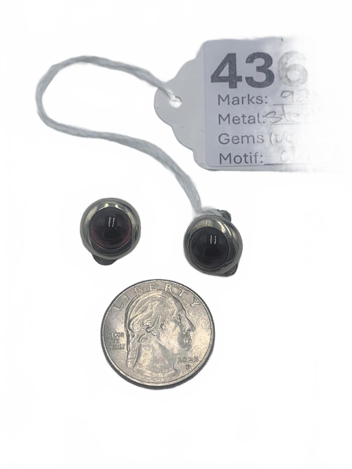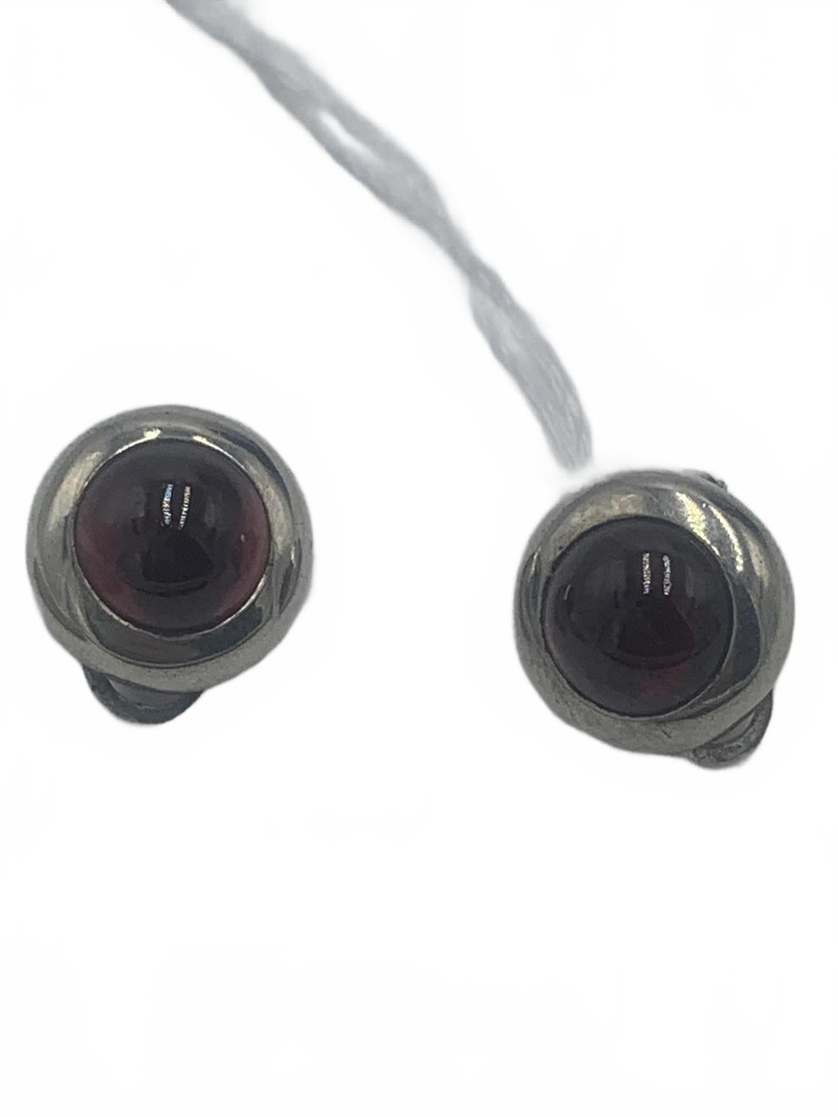 Delightfully small, lightweight and minimalist, these Garnet twin Garnet cabuchons bezel-set in Sterling Silver are the epitome of elegant, geometric perfection.
