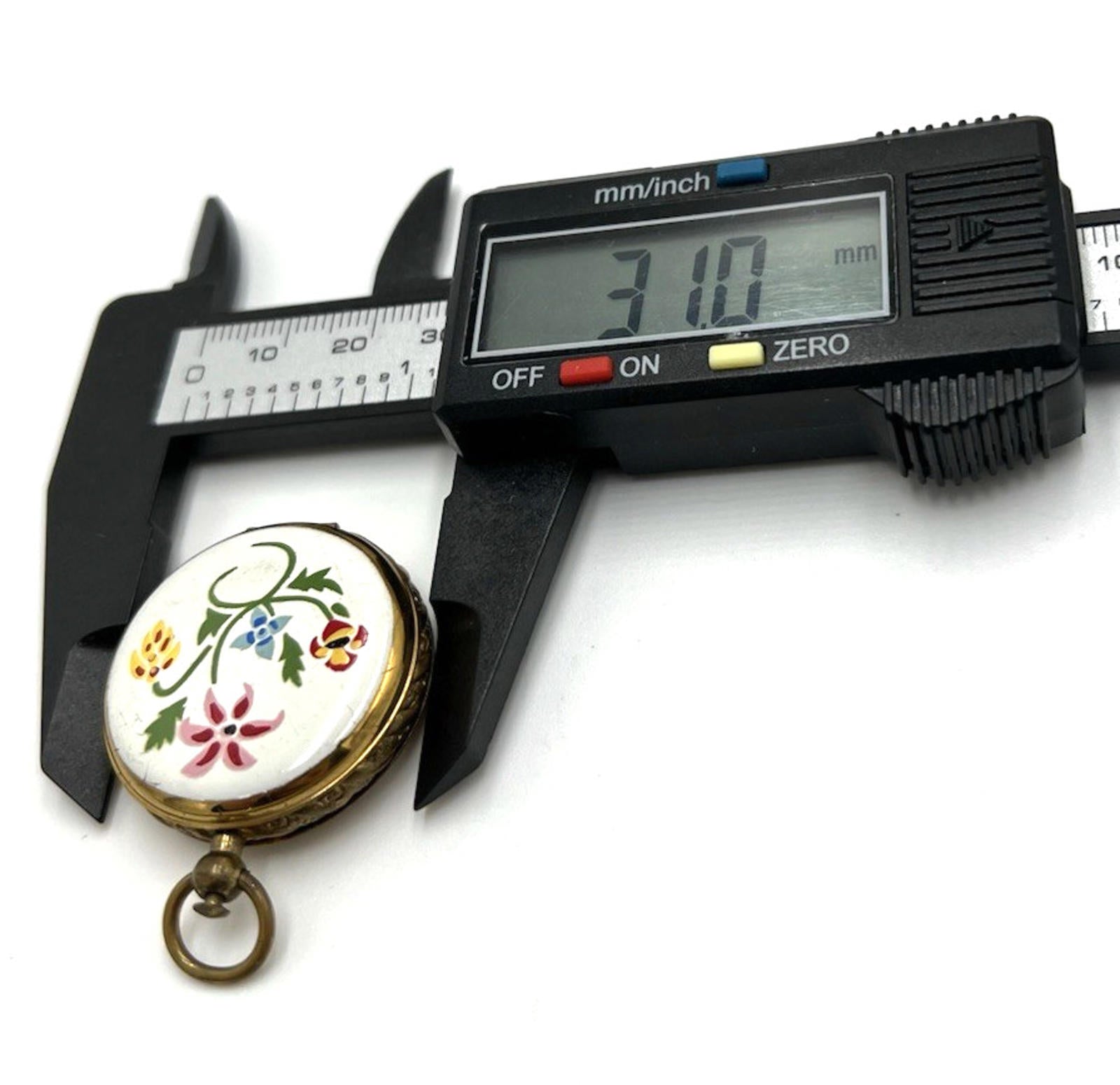 ANTIQUE LOCKET PENDANT 2 Picture Gold tone ROUND Enamel Flowers Mourners Hair