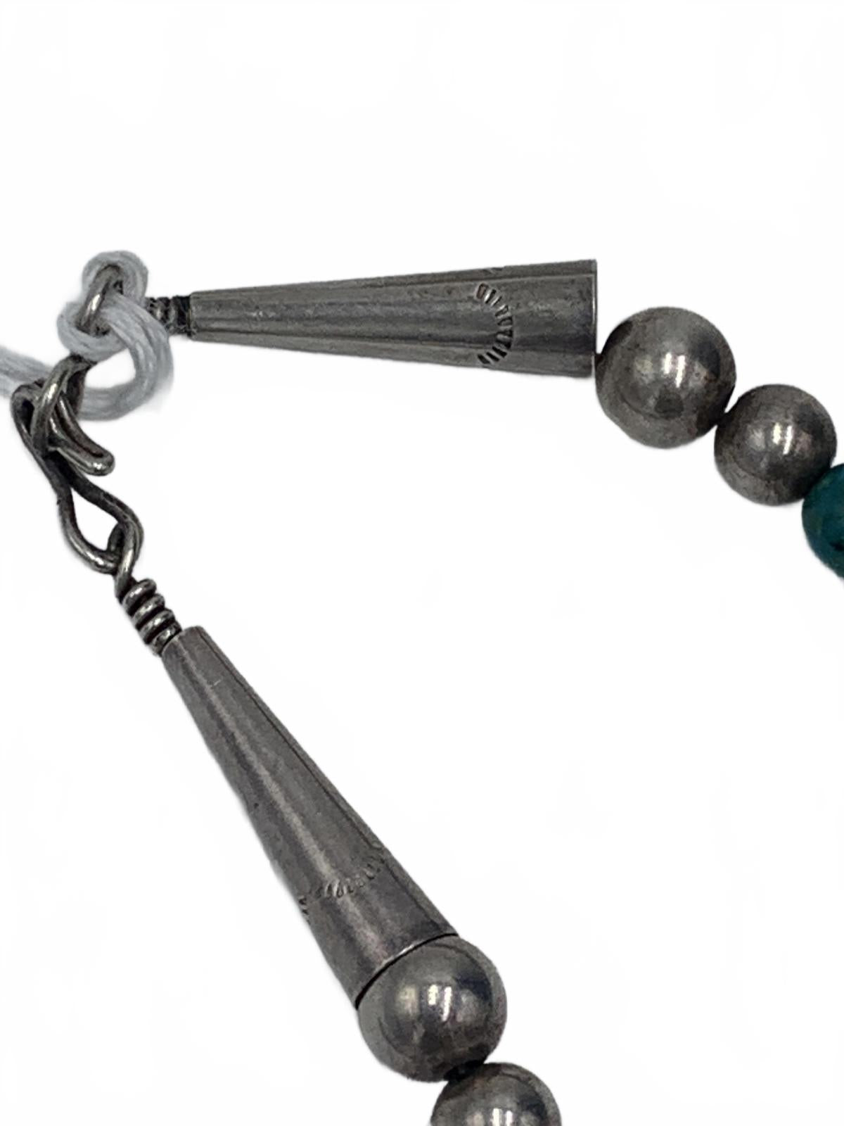 Beautiful turquoise beaded necklace with Sterling Silver findings and "Story Teller" icon motif and cast enhancers, by renowned southwestern/native-inspired artist Carol Felley.