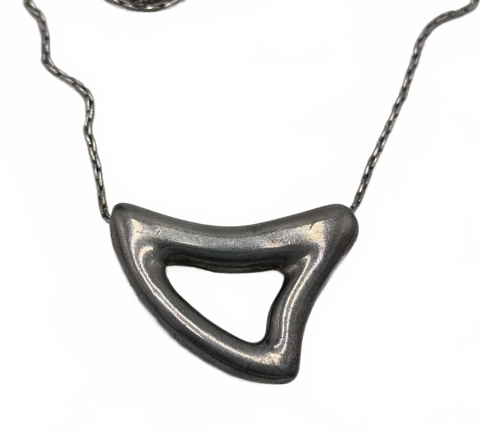 Beautiful modernist abstract statement piece with stylish internal bail in Sterling Silver. A unique and intelligent design that channels a chain through the body of the pendant without marring the design with external bails.