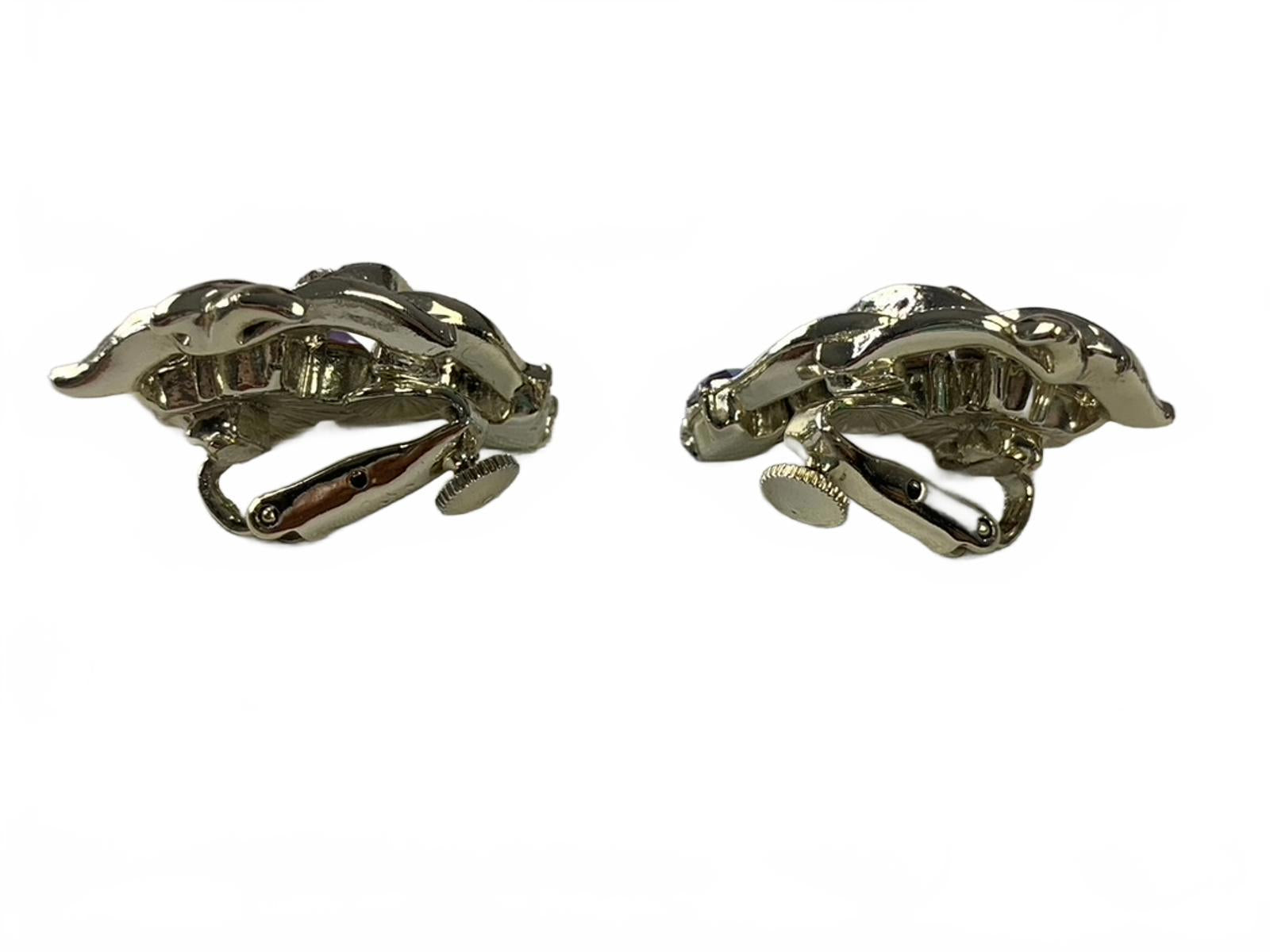 Coro Goldtone White Aurora Borealis Rhinestone Floral/Grape Cluster Clip-On Costume Earrings size 2"