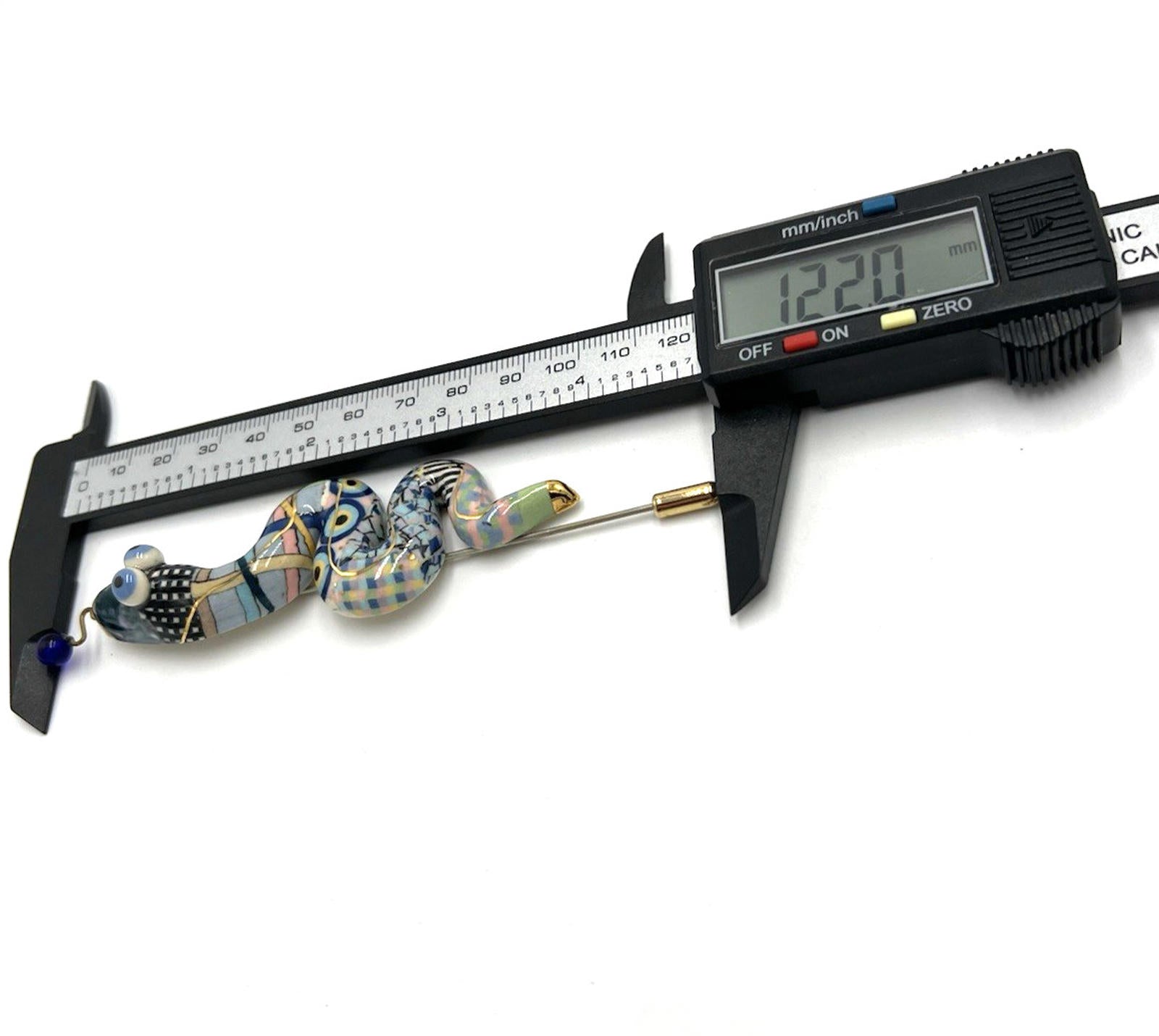 Cynthia Chuang Unsigned Porcelain Checkered Whimsical Snake Large Stick Pin