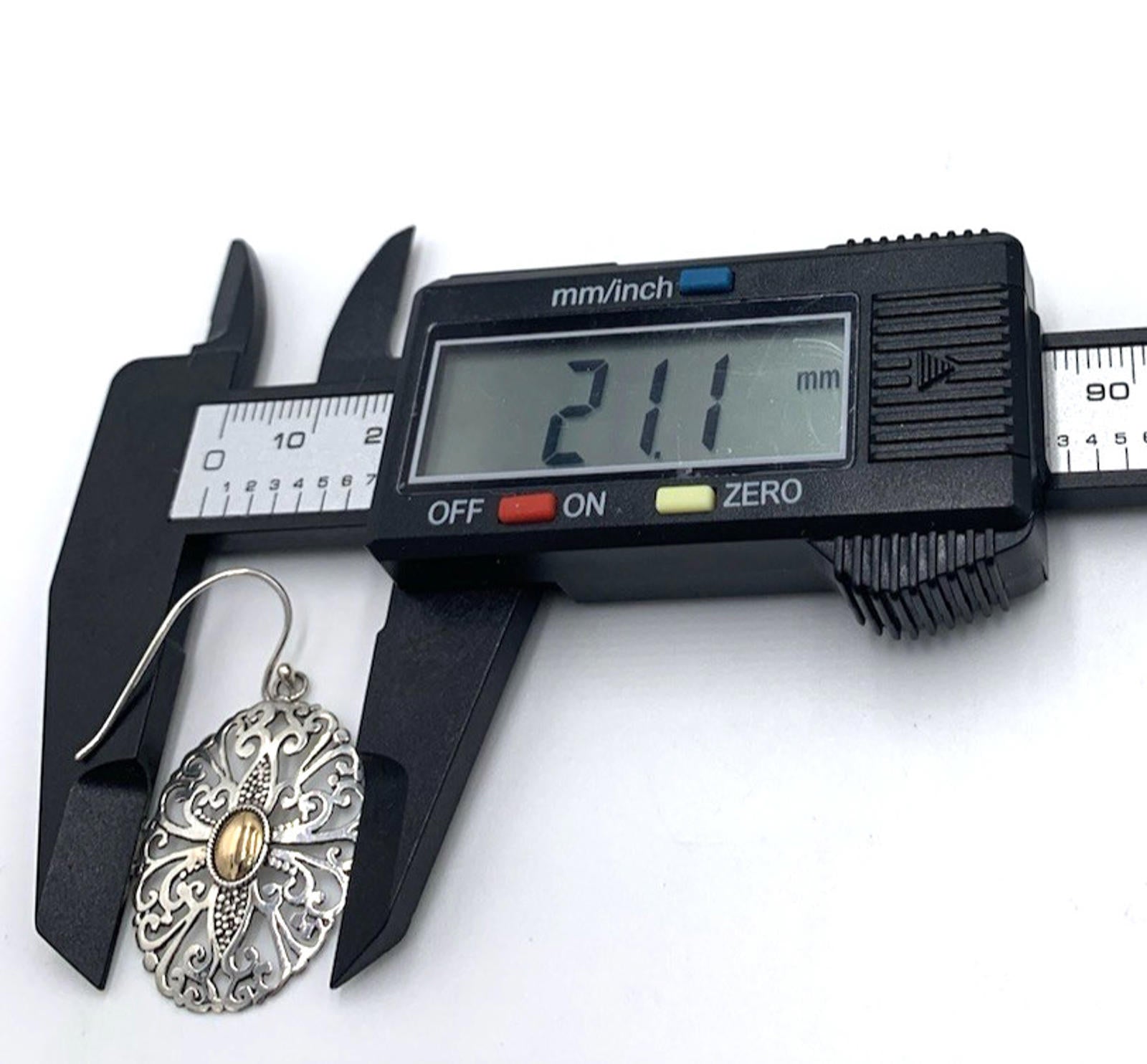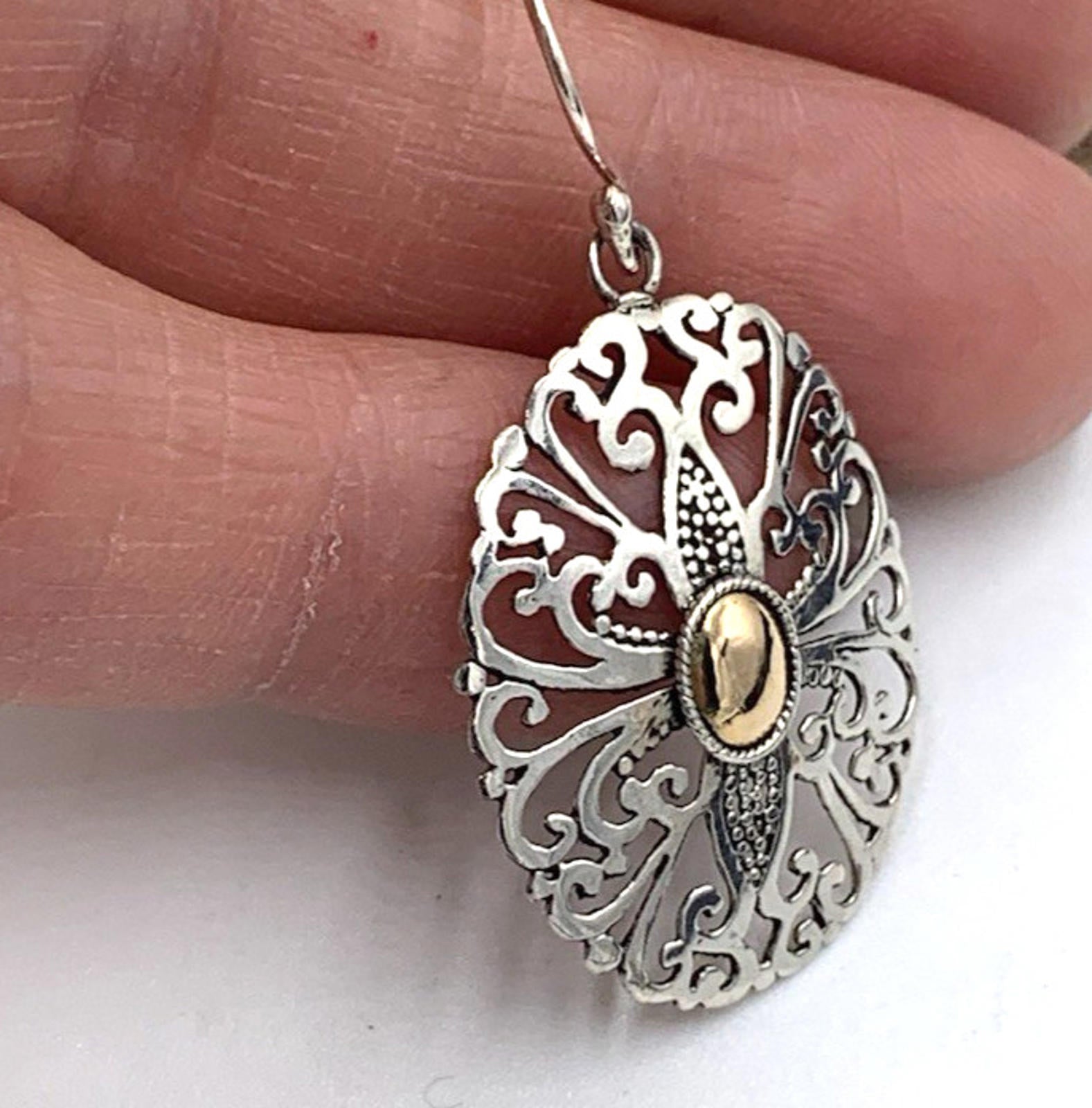Designer Sterling Silver 18k Accent Filigree Oval Dangle Large Earrings