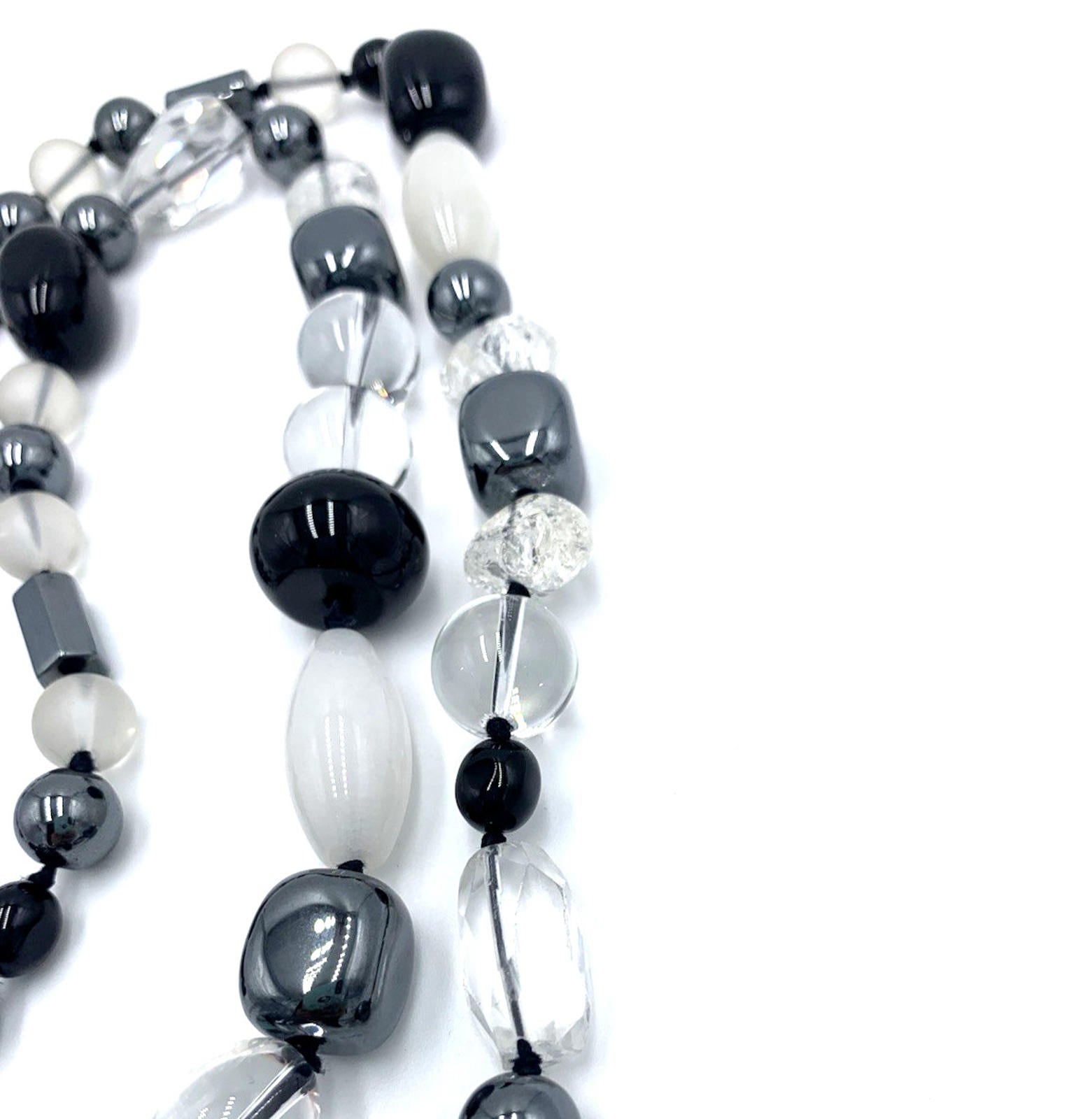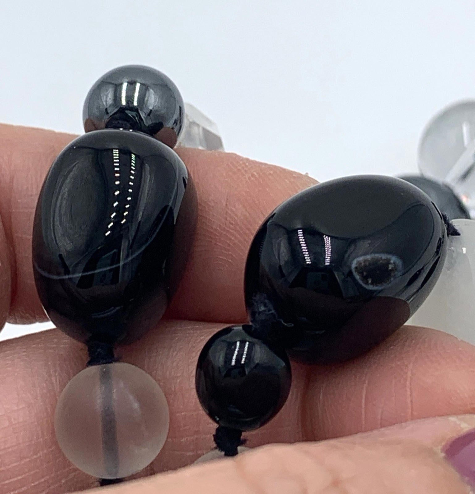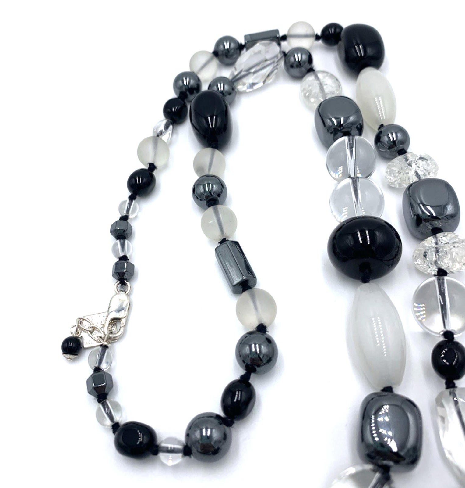 Nate & Etan Agate Crystal Hematite Gemstone Beaded Sterling Silver Necklace 30"
