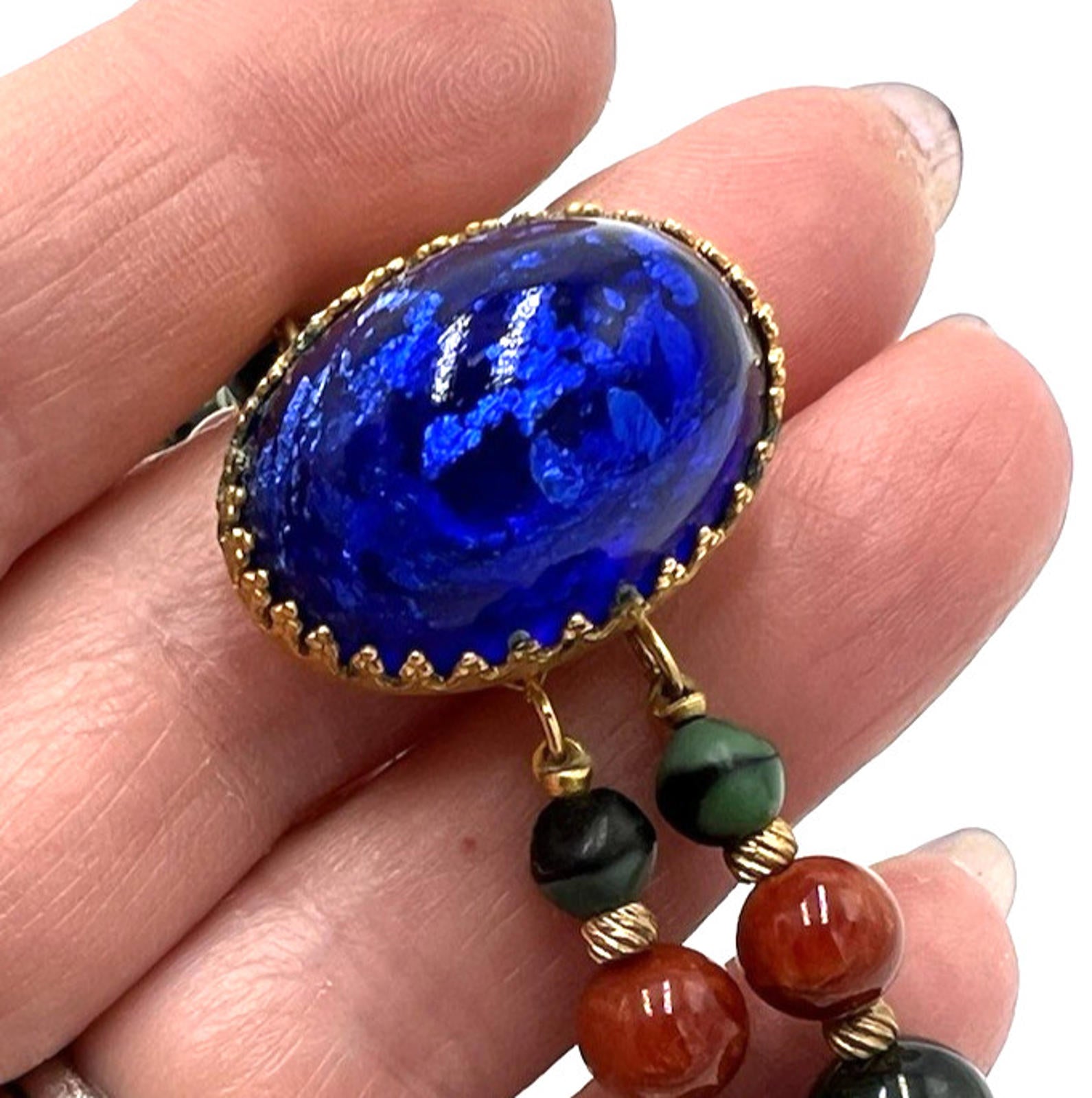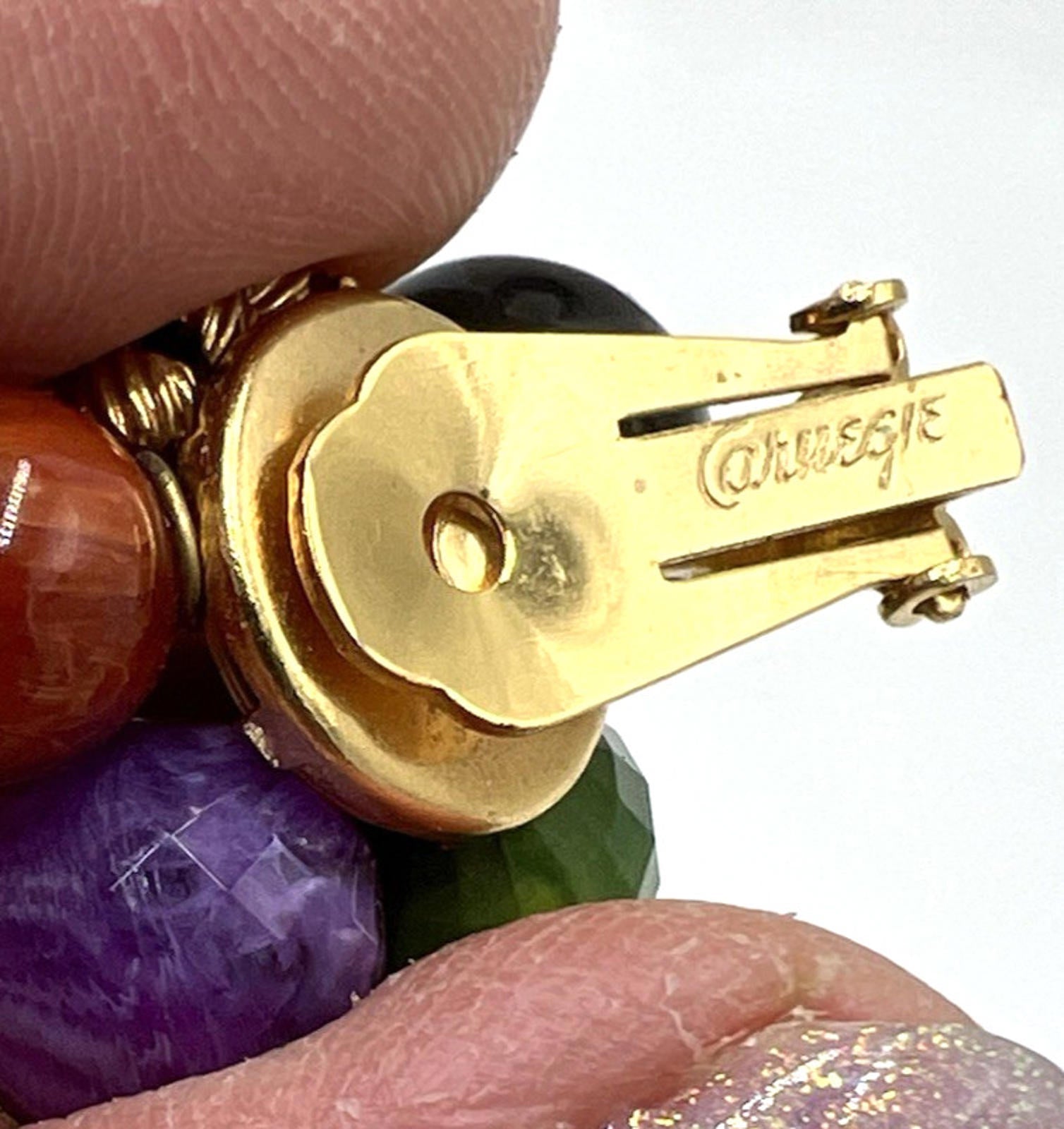 Set Hattie Carnegie Necklace Earrings Vintage Two Strand Faux Malachite Amethyst