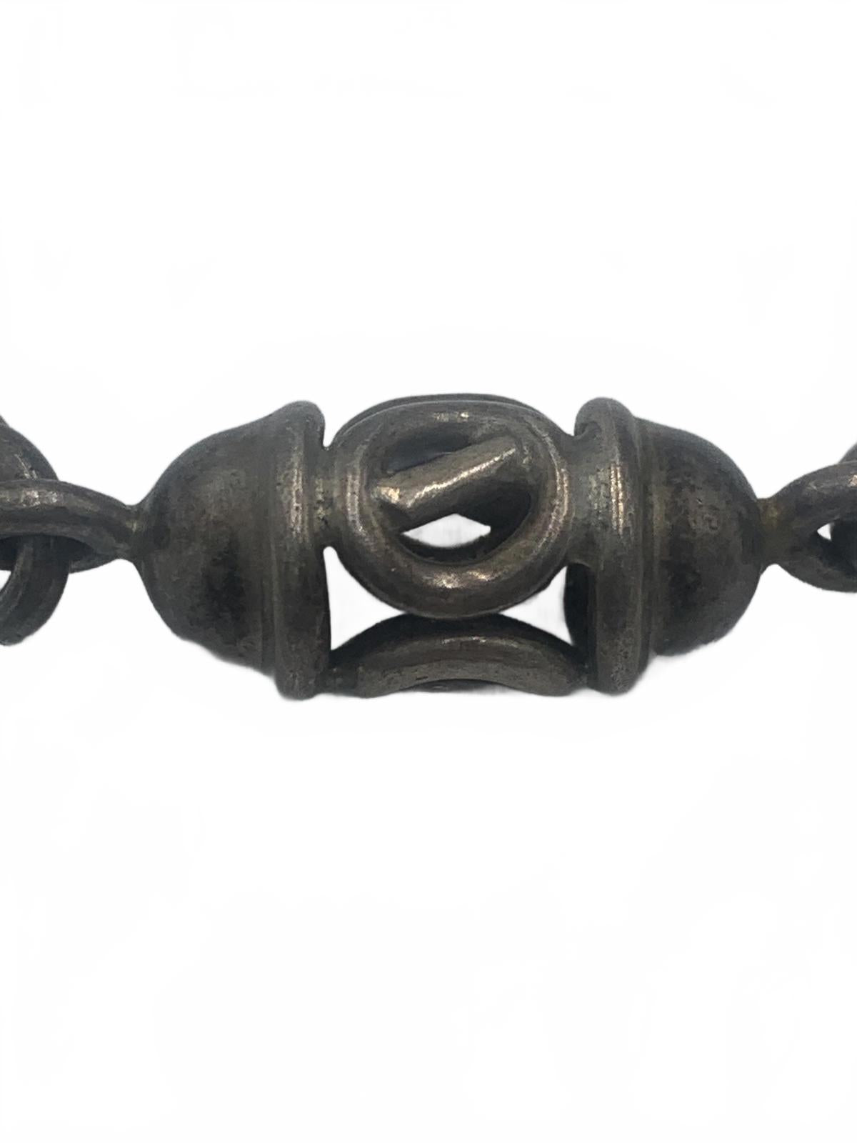 Solid Sterling Silver Taxco bracelet with solid round links and silver beads, and openwork "birdcage" links.