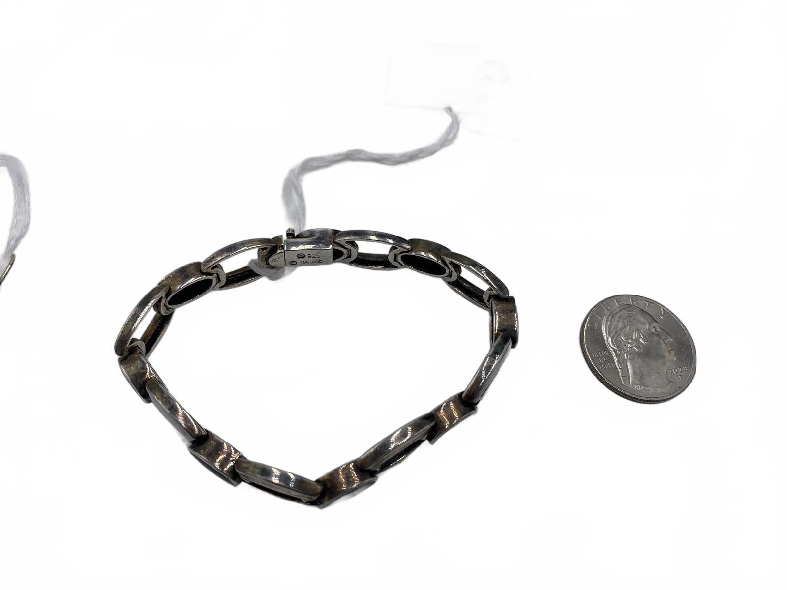 Thailand 925 Sterling Silver 24g Black Onyx Tennis/Link 6.75 Fine Bracelet