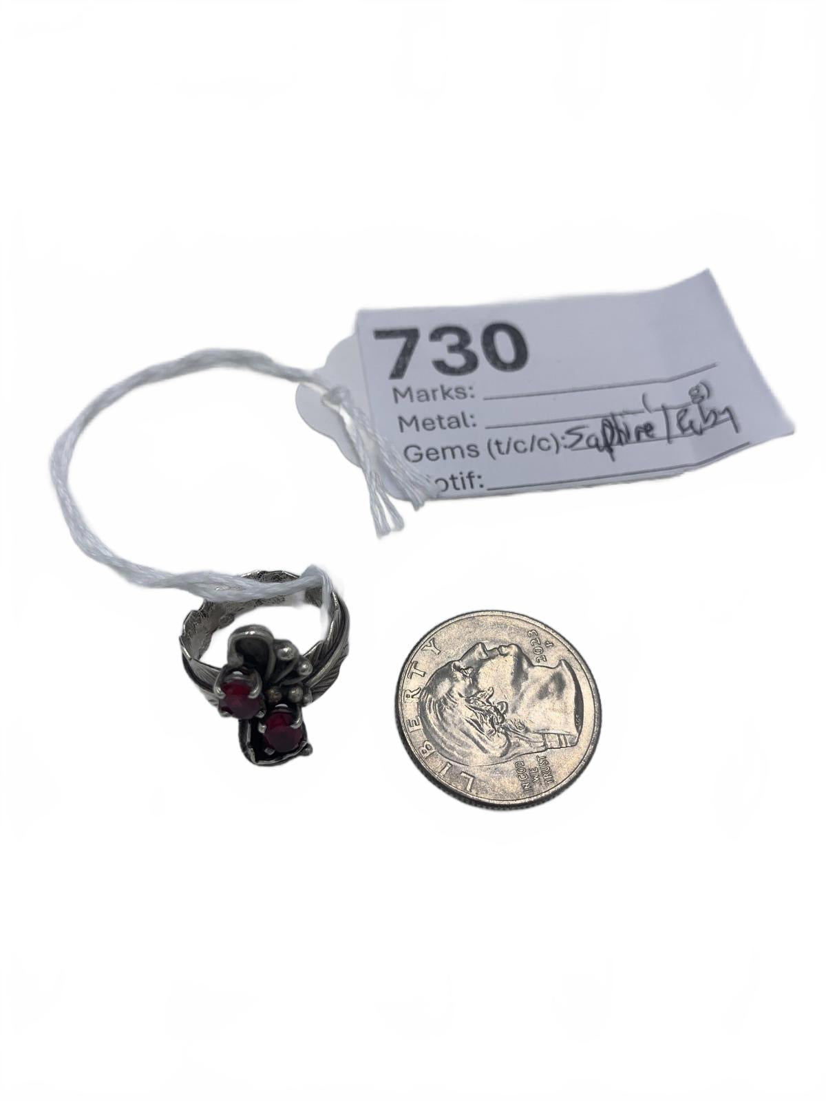 Twin Rubies Set in Sterling Silver Native Floral & Feather Motif Ring (Size 7)