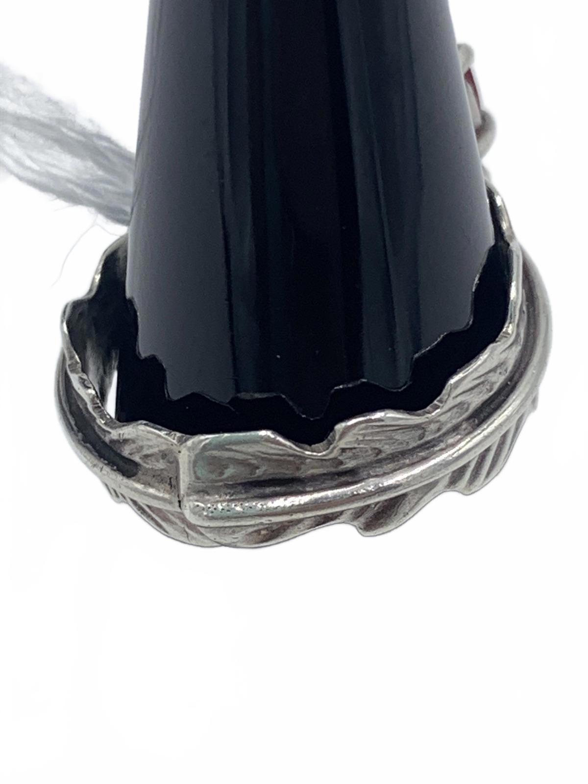 Elegant and smart design: Solid sterling silver ring with floral Ruby & berries motif. Native-inspired "feather" motif as the band. Very refined design with excellent fidelity in the carved feather.