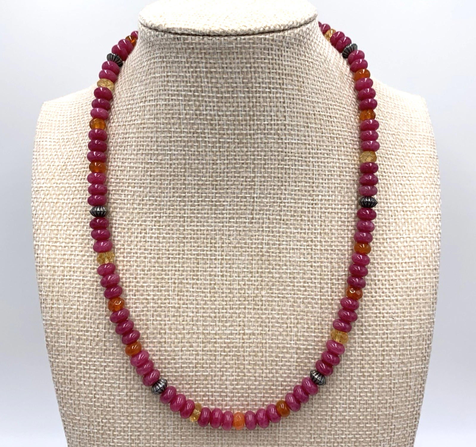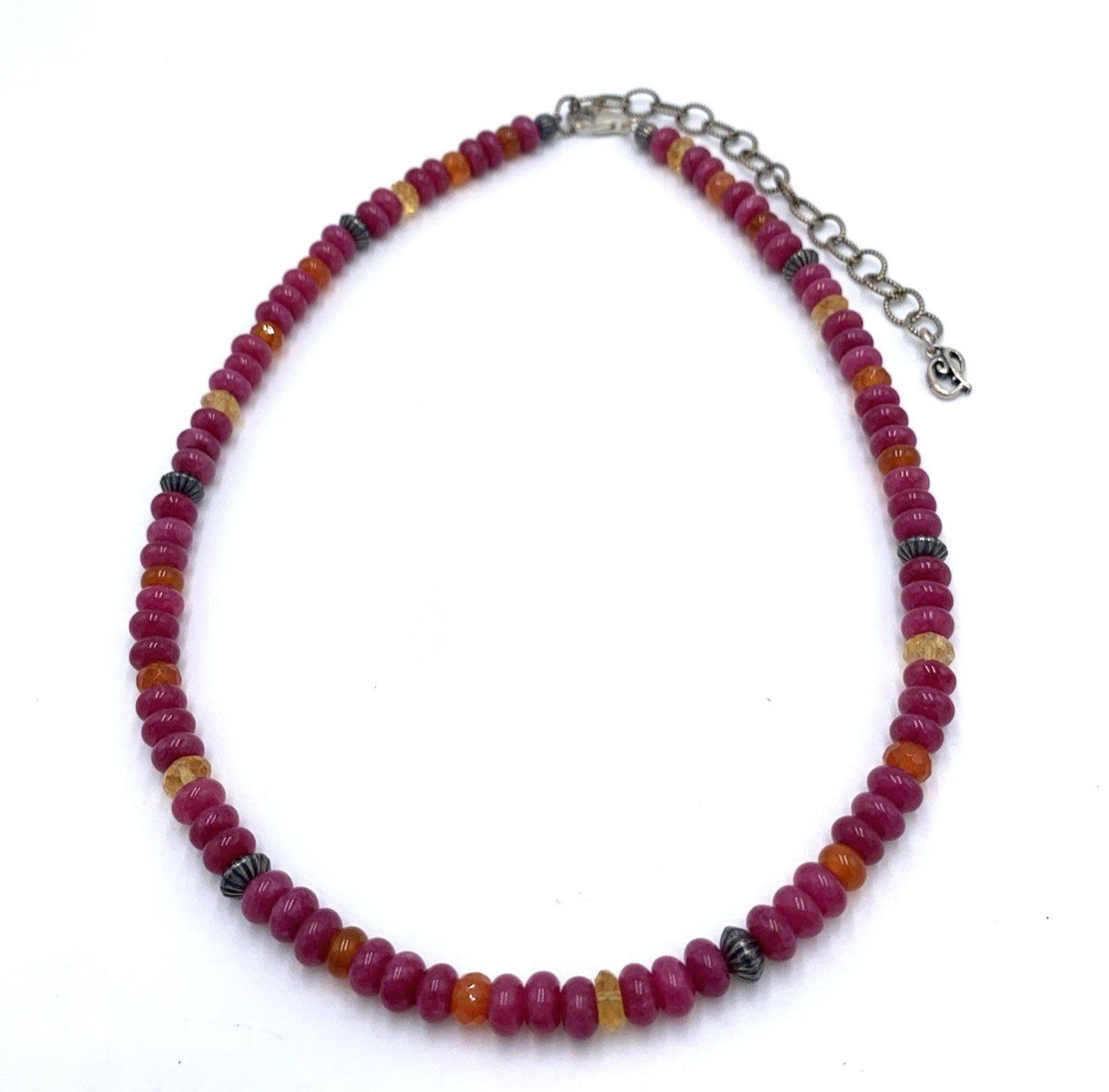 Vintage Carolyn Pollack Sterling Silver Tourmaline Pink Faceted Beaded Necklace