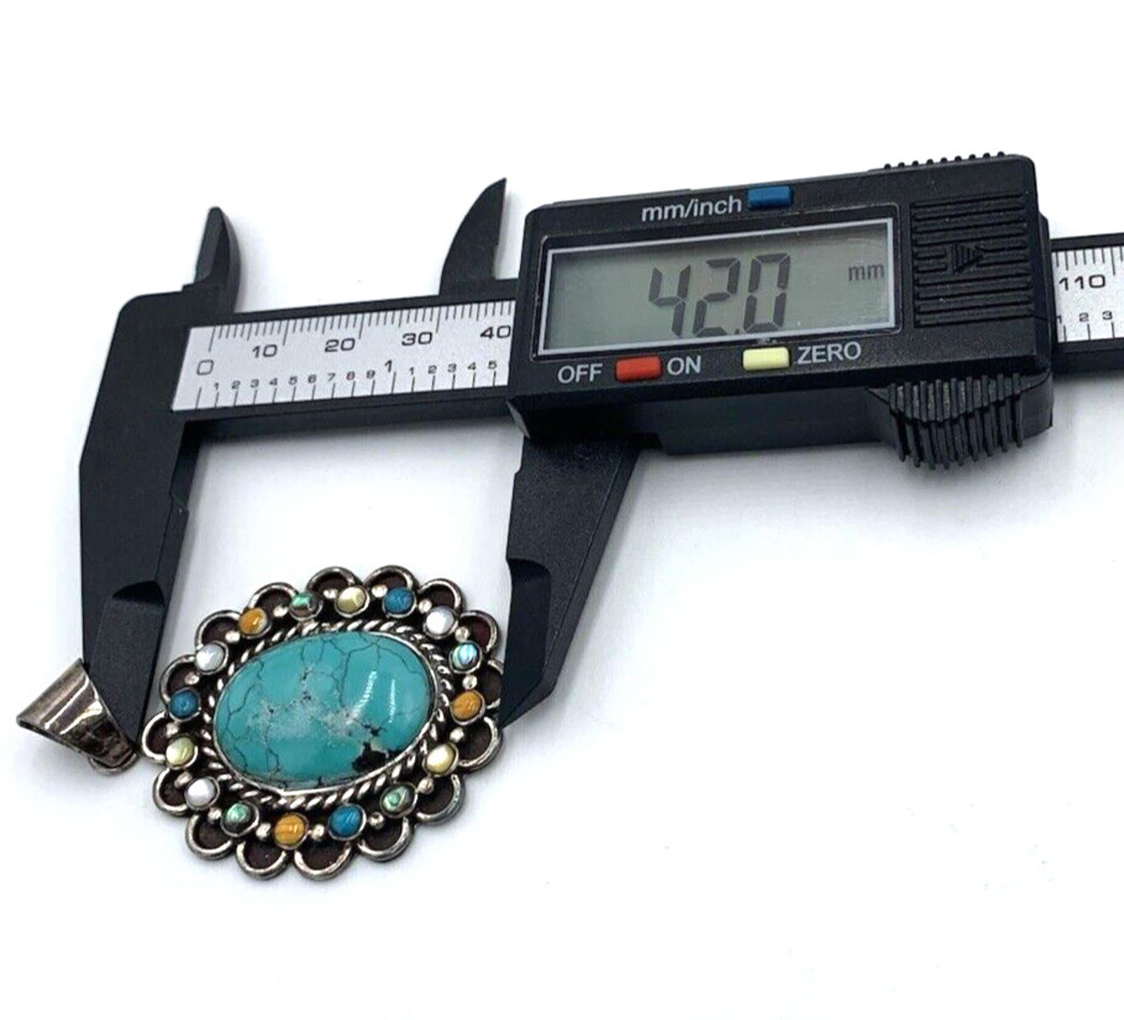 Vintage David R Freeland DRF Large Turquoise Pendant Multi stone Signed Rare