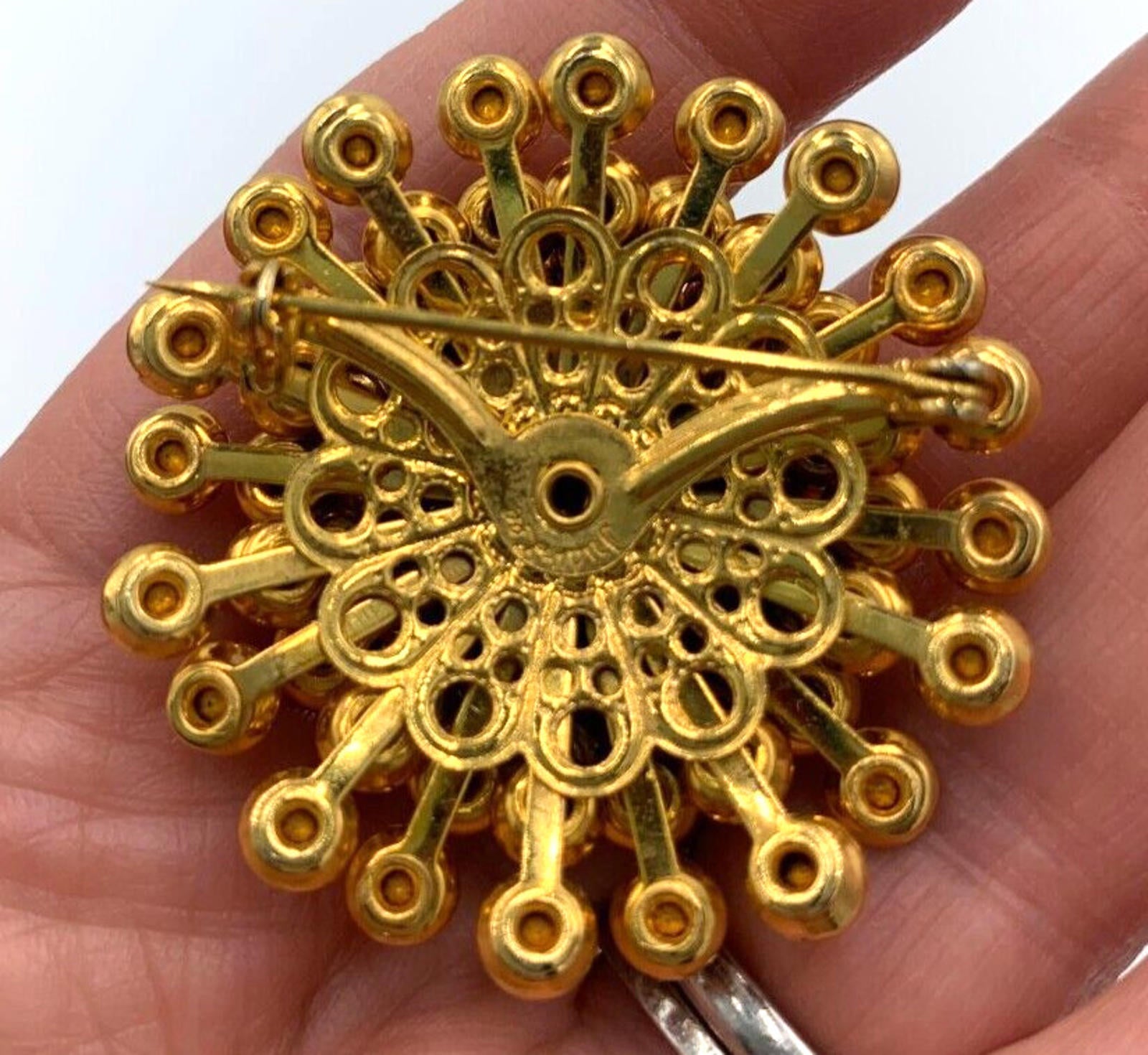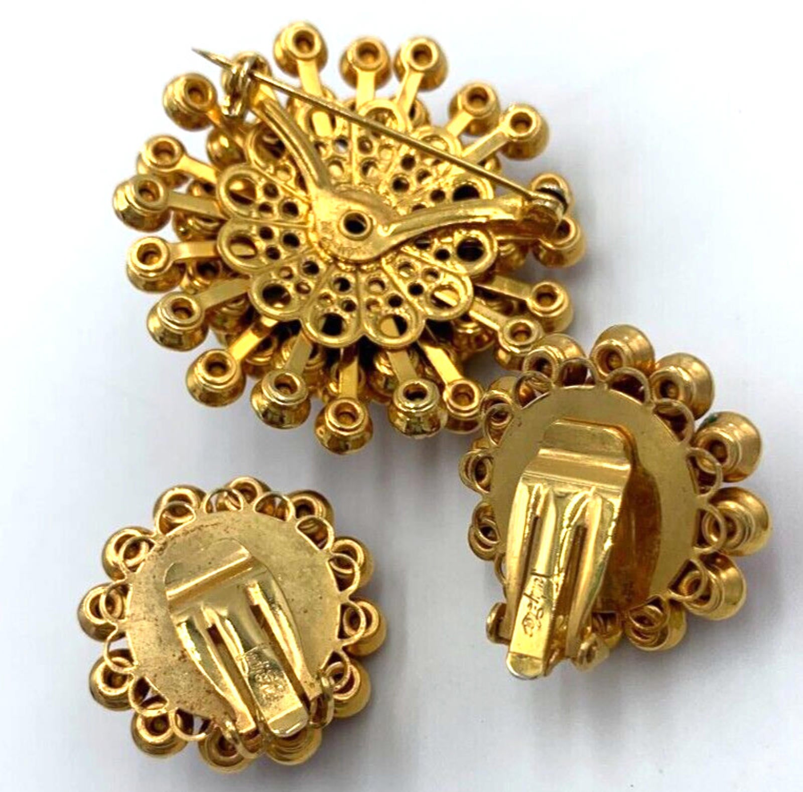 Vintage Judy Lee Clustered Dome Ruby Red Rhinestone Gold Tone Demi Parure Signed