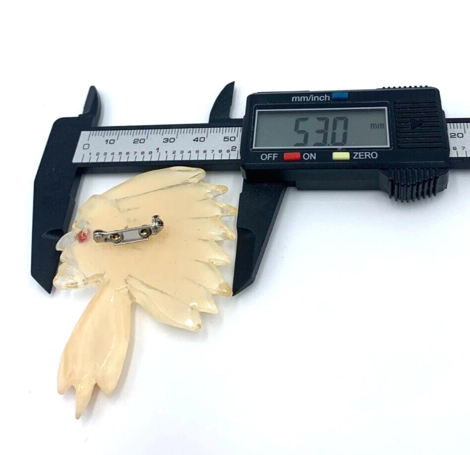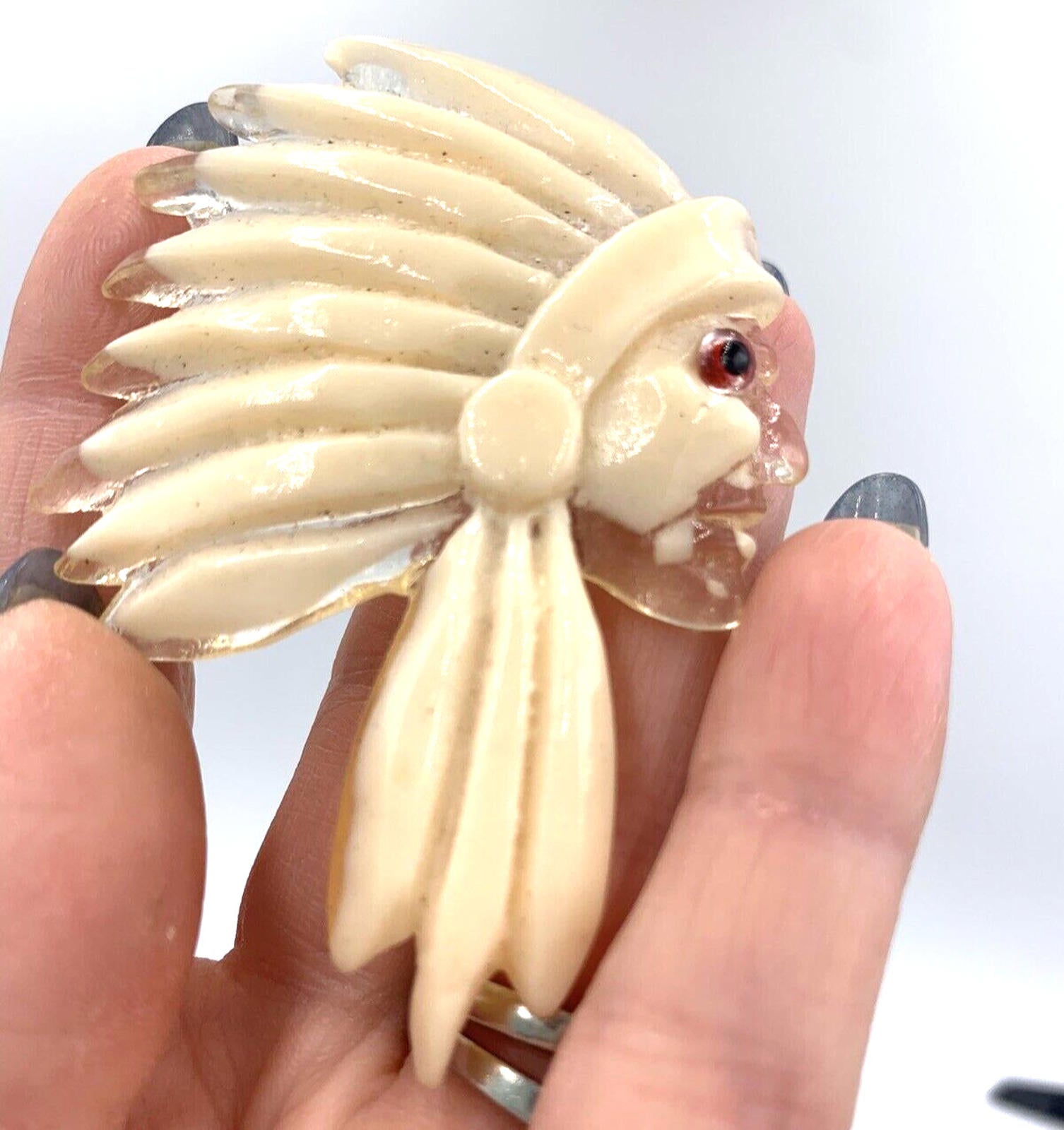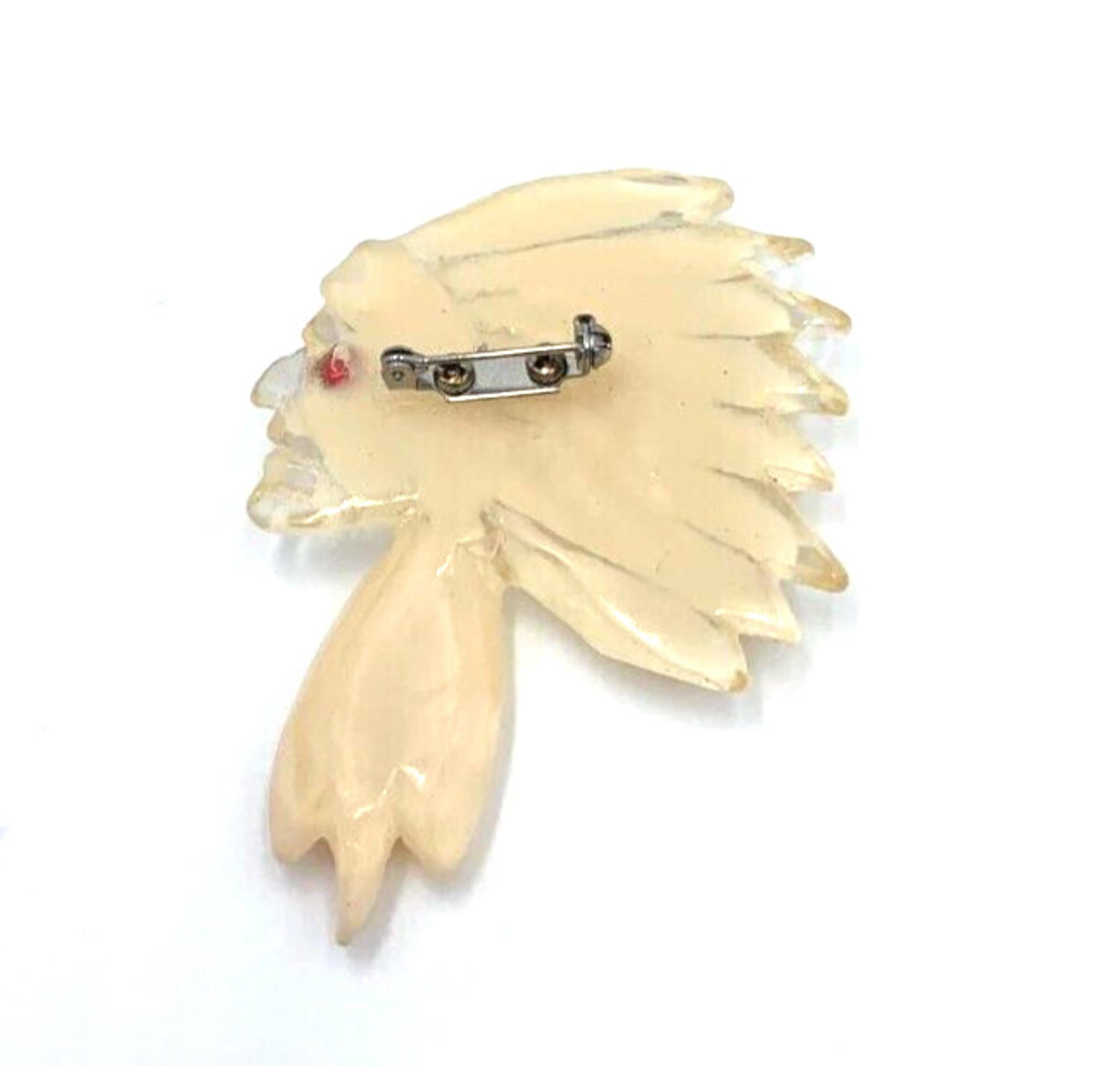 Vintage Mid Century Textured Native American Chief Cream Figural Lucite Brooch