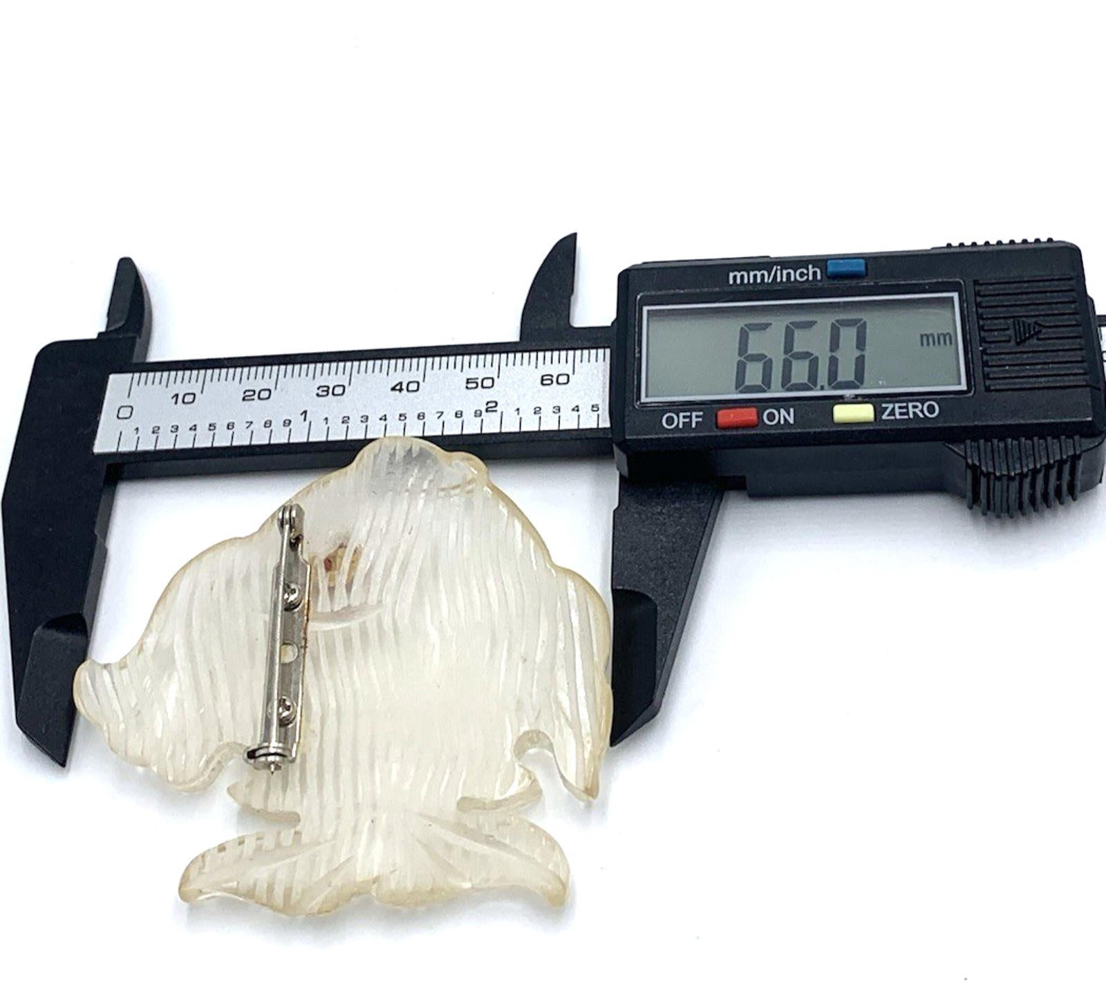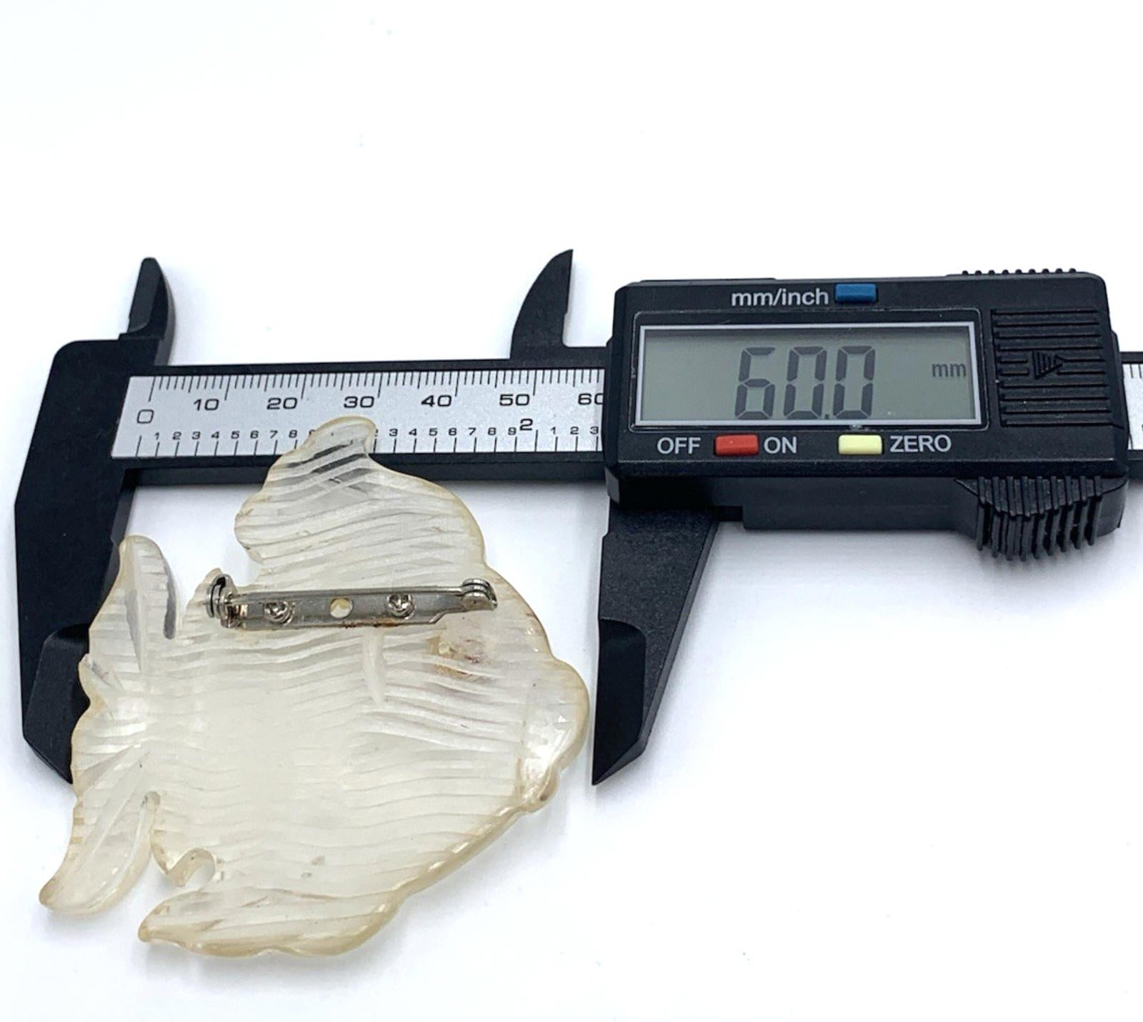 Vintage New Old Stock Clear Reversed Hand Carved Lucite Fish Brooch/Pin Red Eye