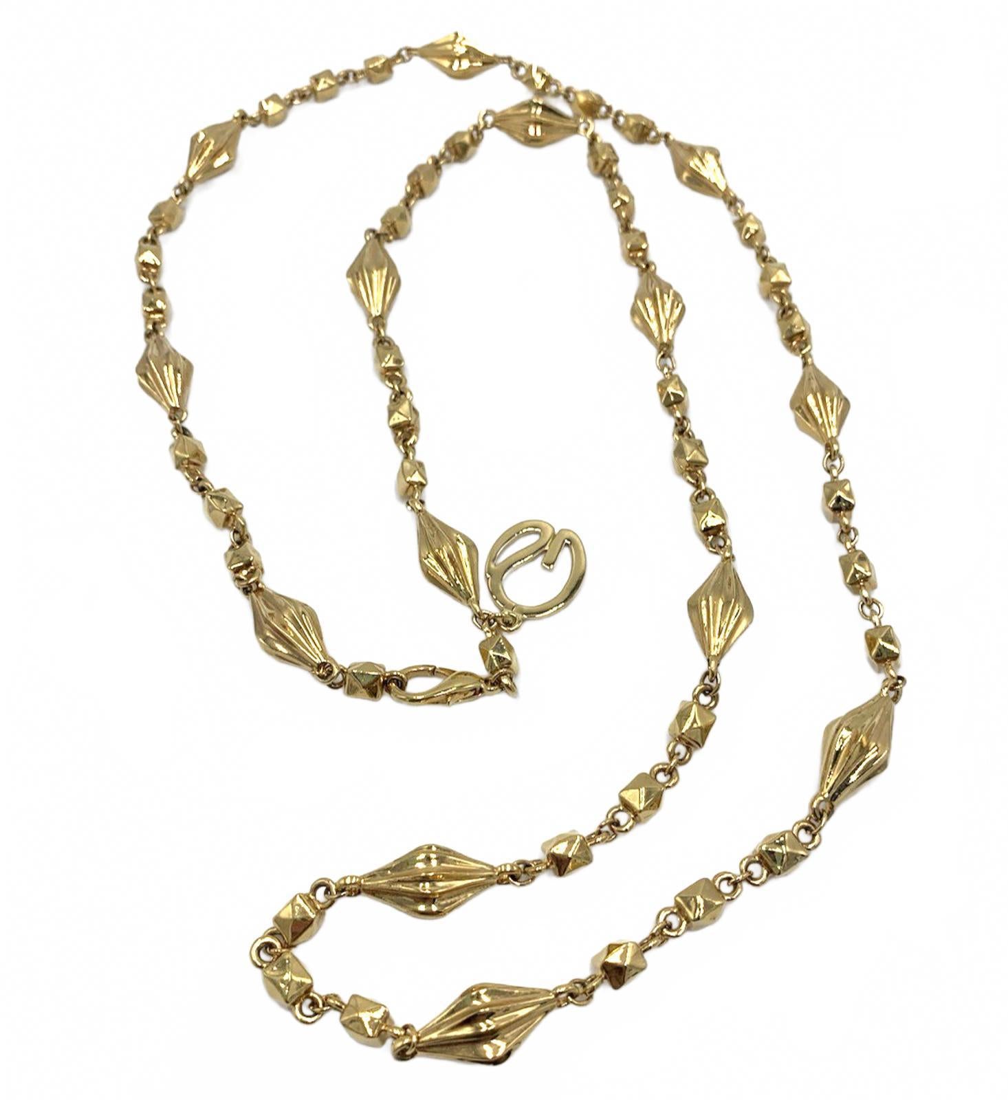 Vintage St John Designer Faceted Goldtone Diamond Stud Link Runway Necklace 40”