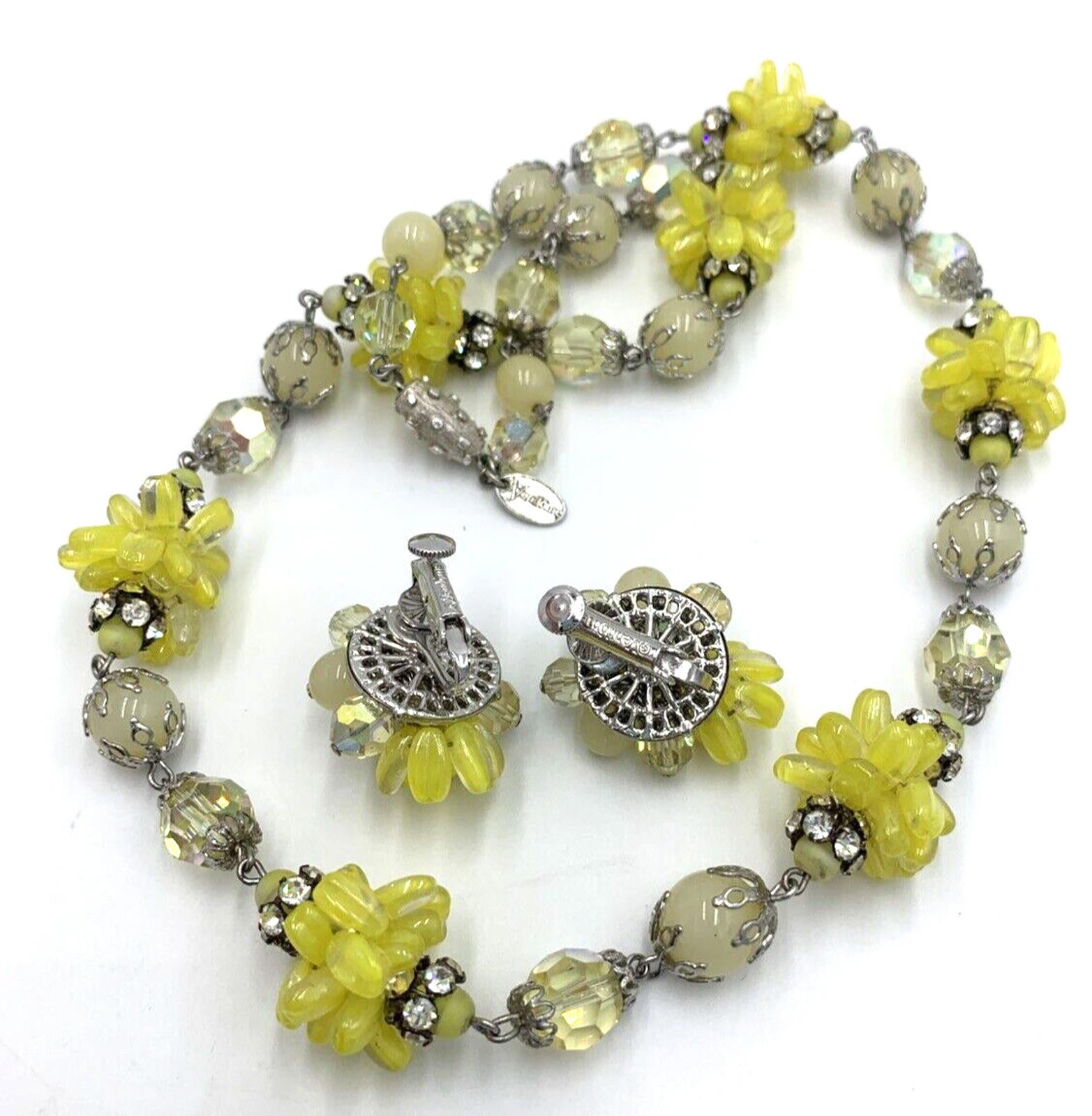 Vintage Vendome Set Yellow Glass Bead Cluster AB Necklace & Earrings Rare OOAK
